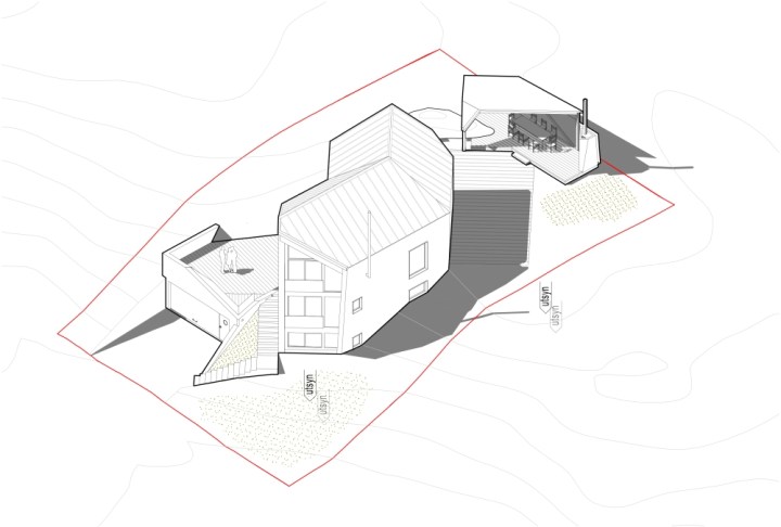 Ved utforminga av huset er det lagt vekt på saksinga av etasjer. Trappa i midten av bygget binder saman på tvers av nivåer og rom.